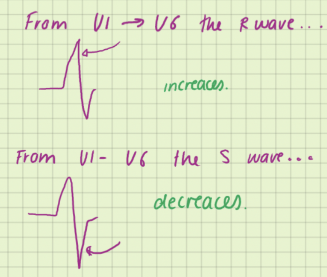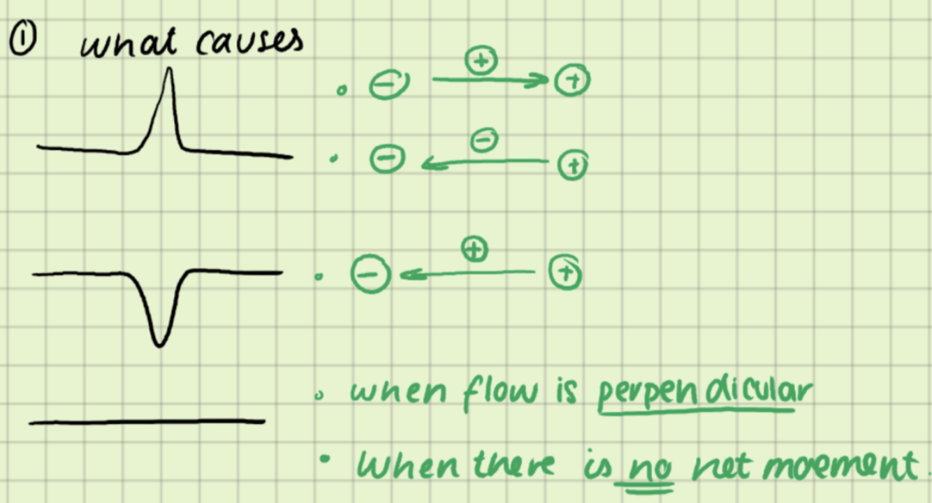 + charge moves to the - electrode, causing a downward deflection. This septal depolarisation causes the Q wave