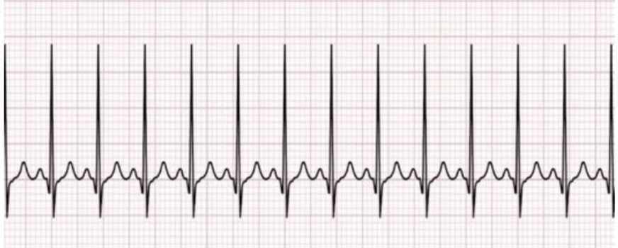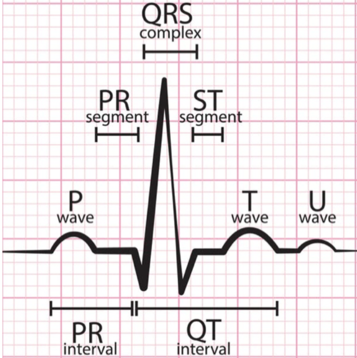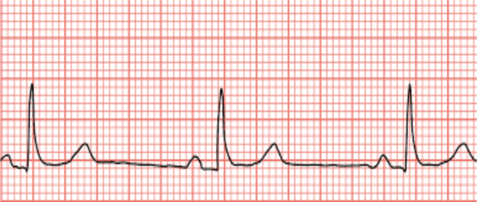 On an ECG trace, 3 distinctive waves represent sinus rhythm: P wave, QRS complex and T wave