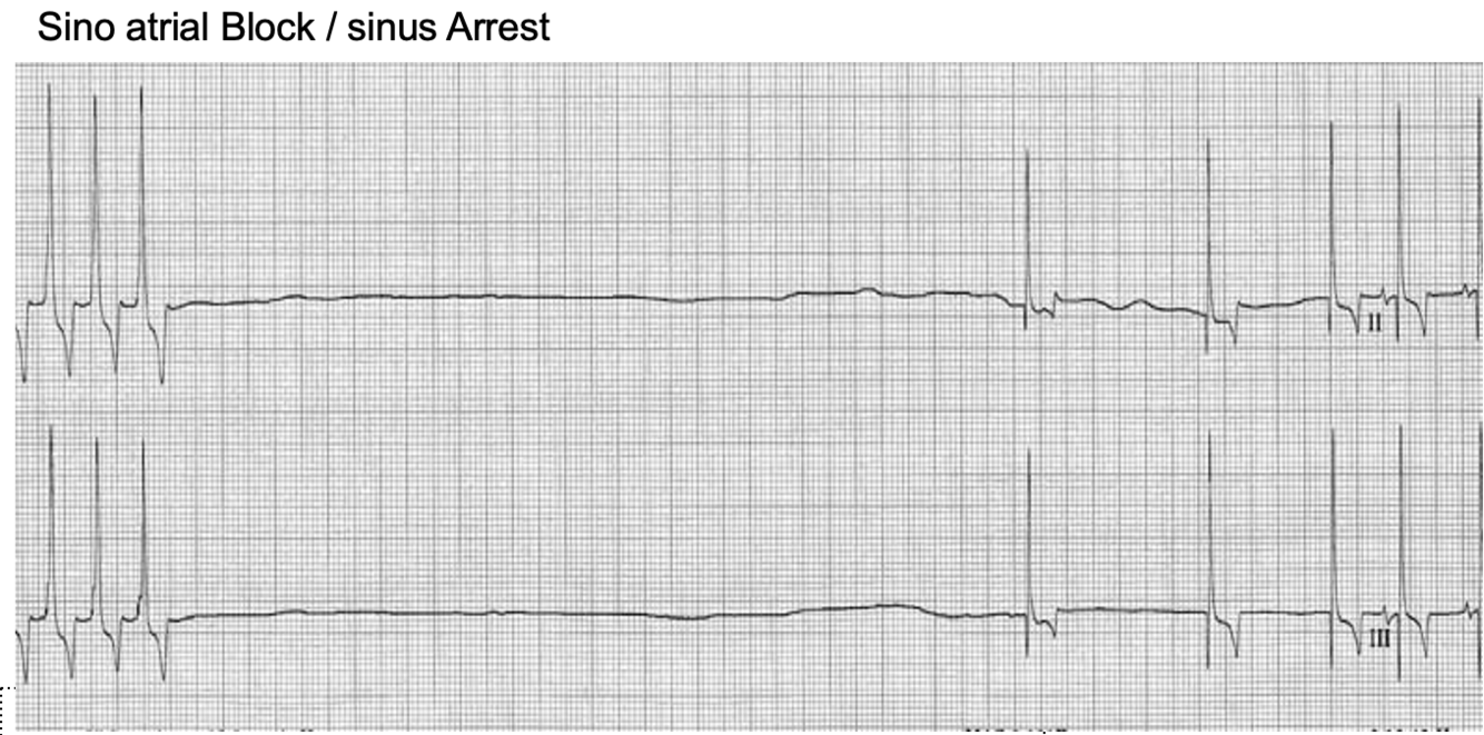 What does sino atrial block/sinus arrest look like on an ECG and why?