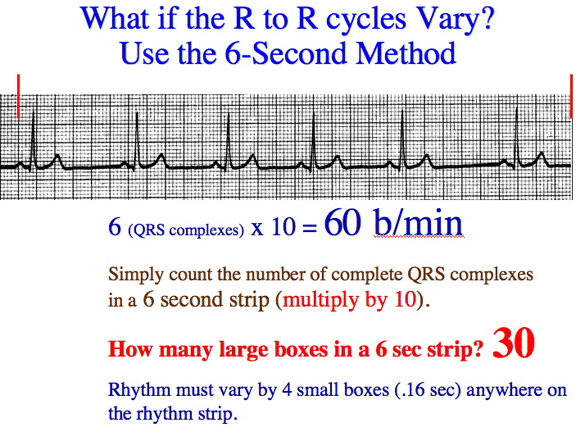 Irregular - count the number of QRS complexes in 6 seconds (30 large square)