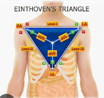 The chest leads are derived by comparing the electrical potentials at the centre of Einthoven’s triangle to the potentials recorded by each of the V1-V6 electrodes placed on the chest wall, thus creating 6 chest leads