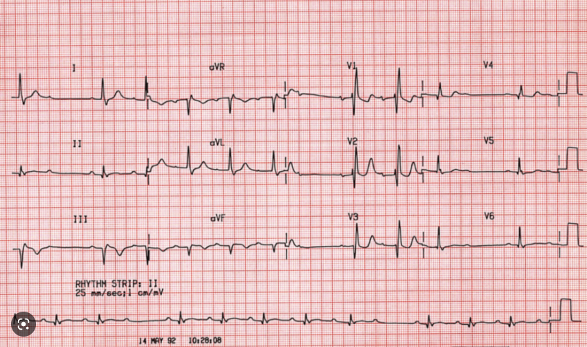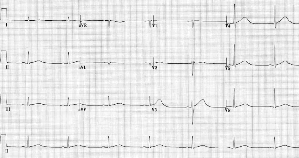 ST depression in reciprocal leads II,III and aVF