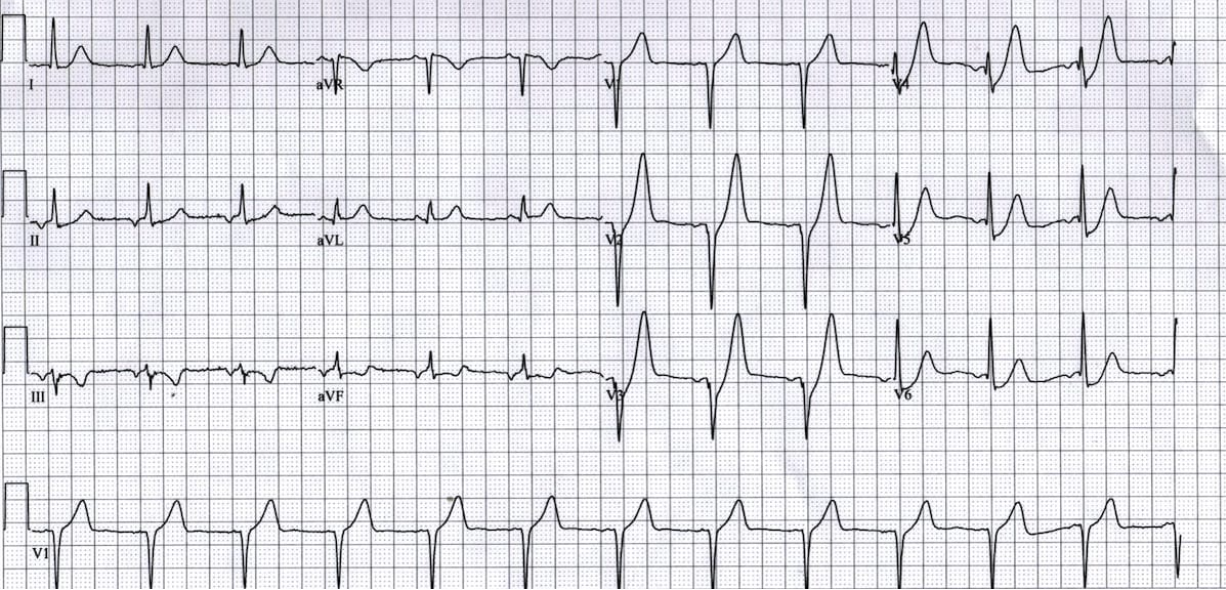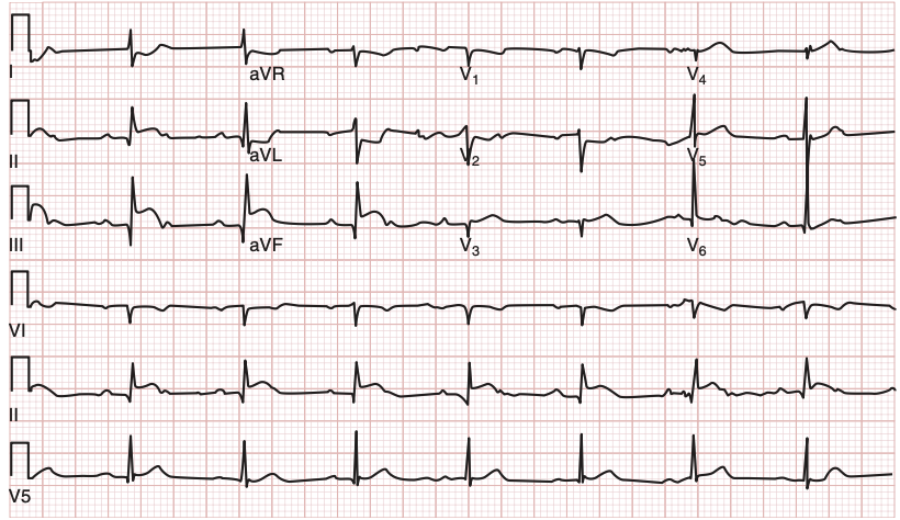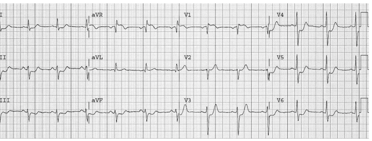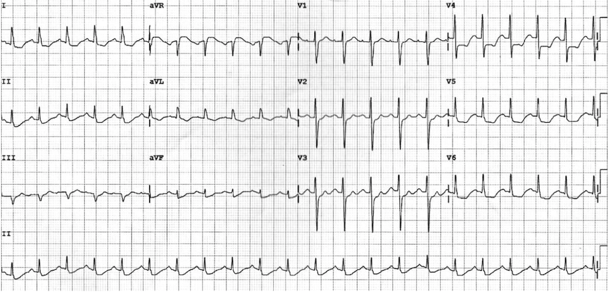 E. excessive >5mm discordant ST segment elevation (weakly suggestive of AMI)