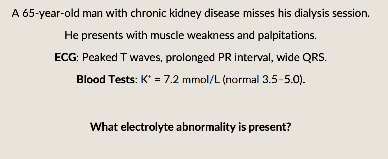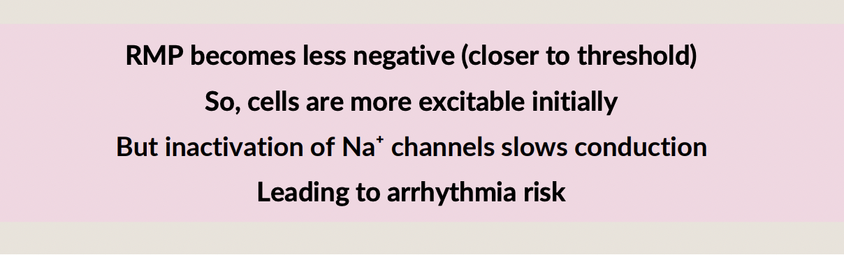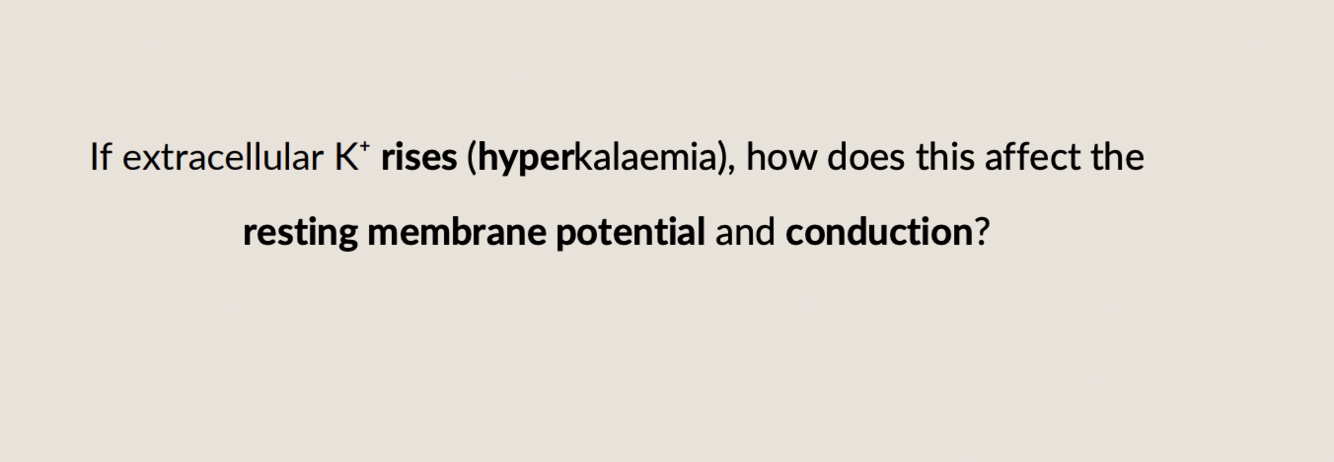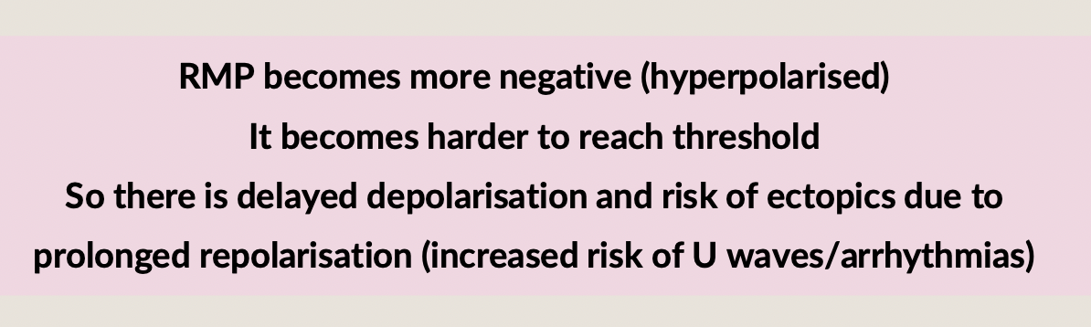severe hyperkalaemia - becomes less negative (depolarised closer to threshold)