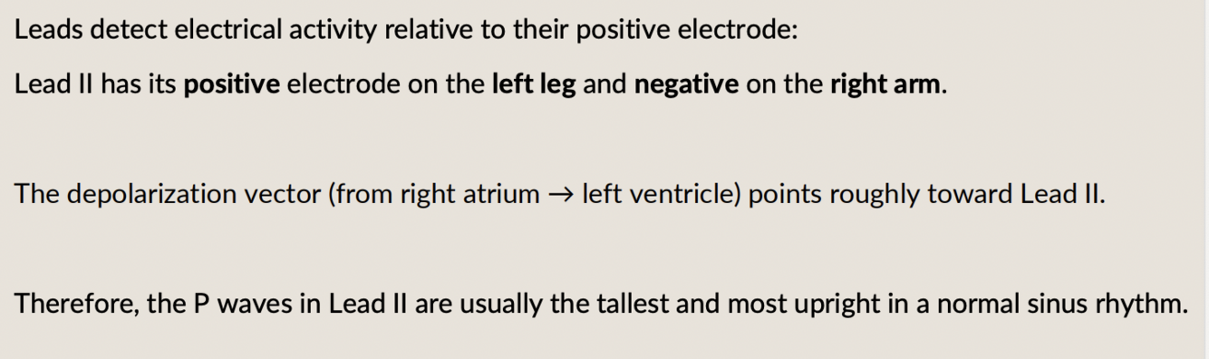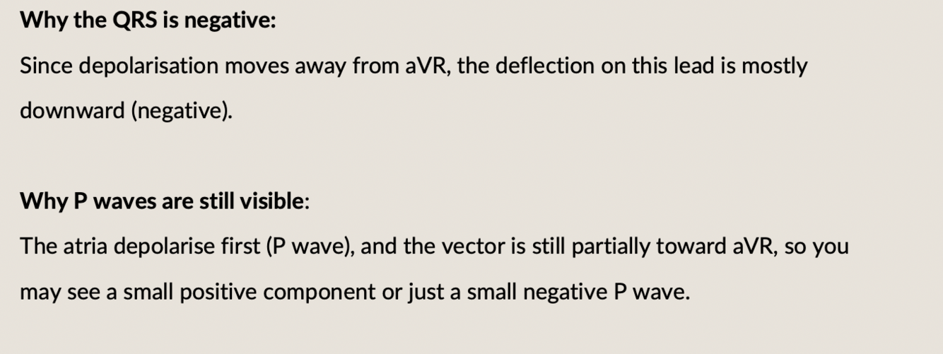 Which lead is the QRS mostly negative because depolarisation moves away from this lead, but P waves are still visible?
