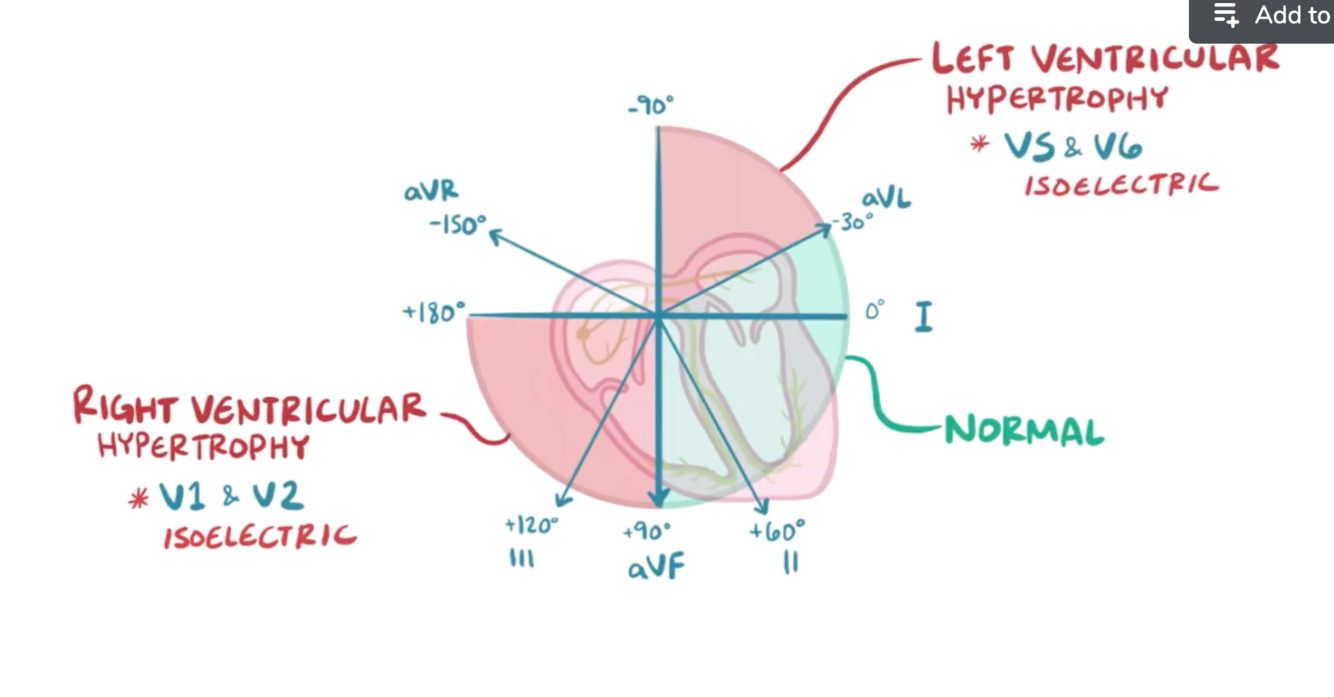 How might you recognise right ventricular hypertrophy (i.e. right axis deviation) on: