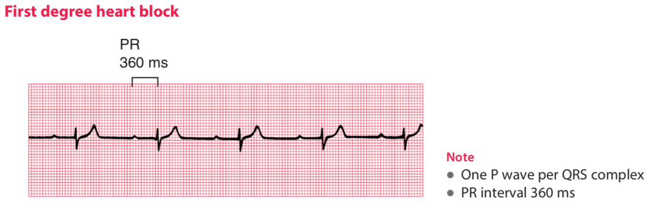 normal length of PR interval = 120-220ms (3-5 small squares)