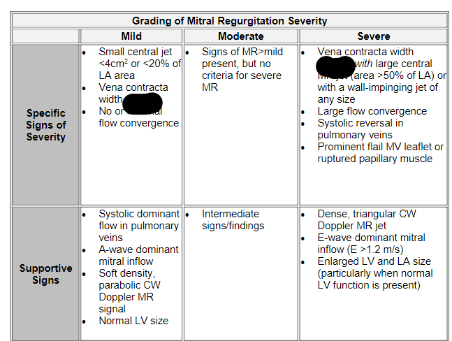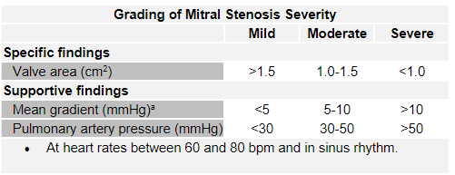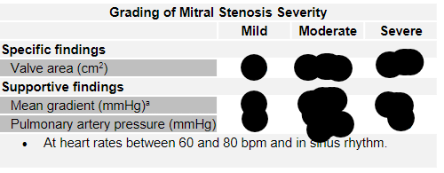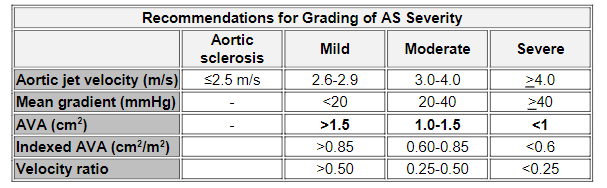 What are the values of severity for MS in terms of valve area