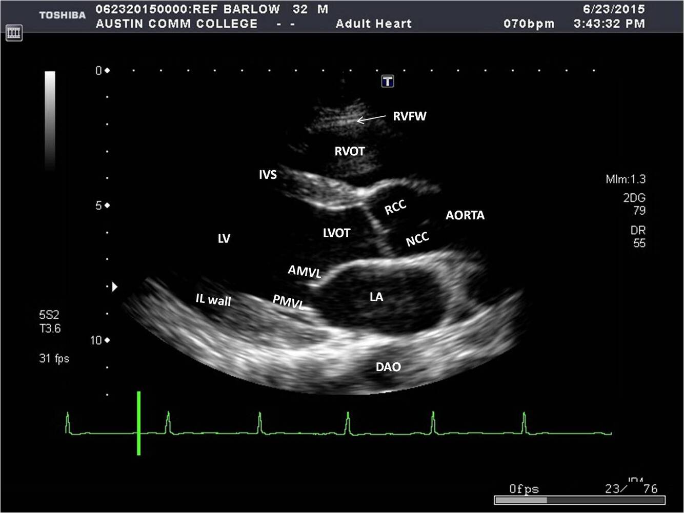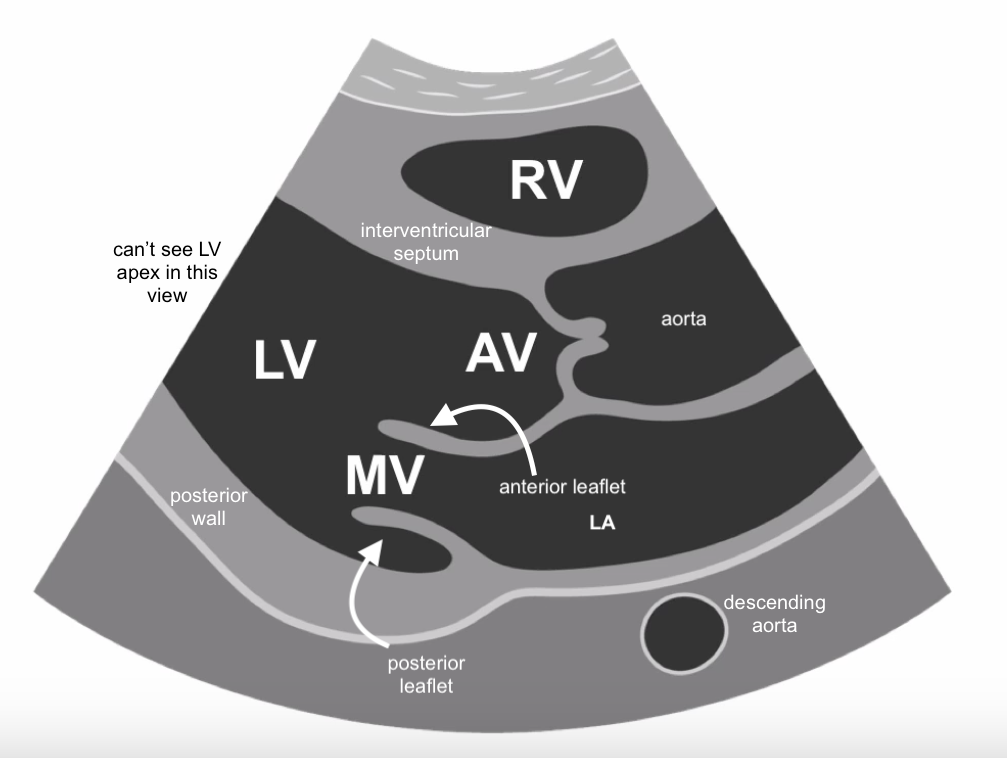 what are you expected to visualise from parasternal long axis view (actual echo image)
