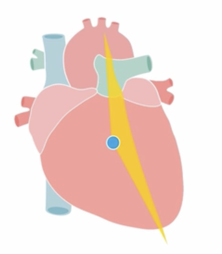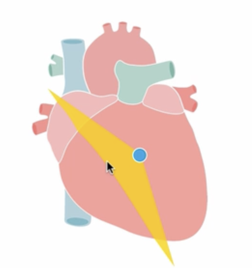 cardiac probe notch towards right shoulder, at 4th intercostal space