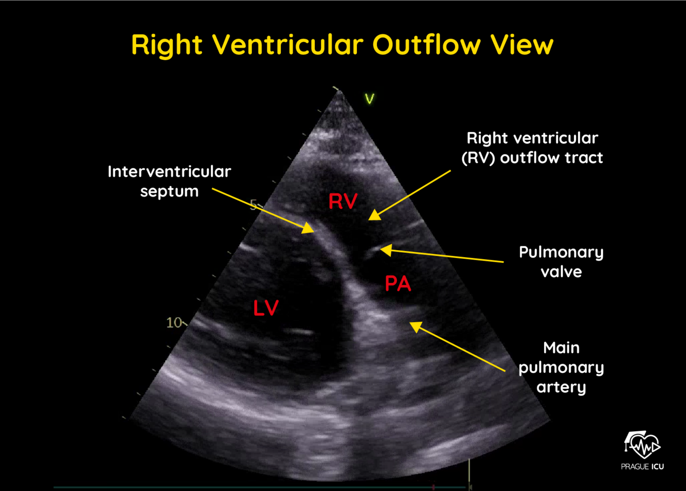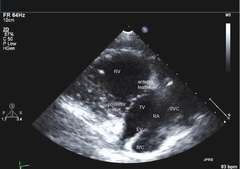 PLAX inflow view to visualise RV, RA, tricuspid valve