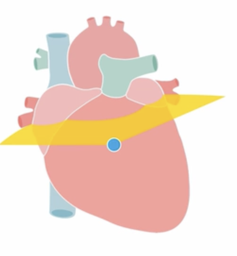 cardiac probe at 4th ICS, notch pointed towards right shoulder