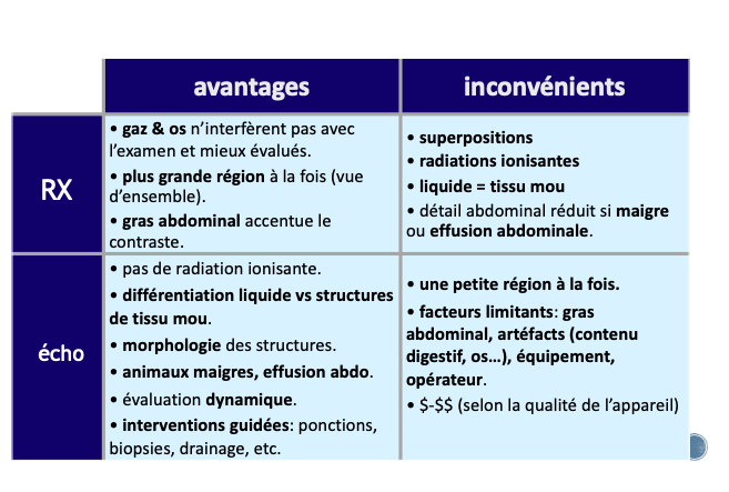Quels sont les avantages et inconvénients de la RX et de l’écho?