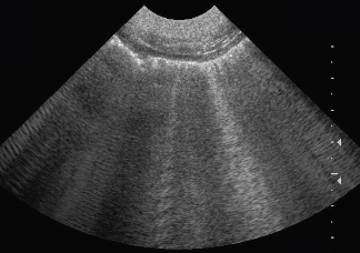distal à du gaz : se présente comme pleins de lignes parallèles distalement à la structure gazeuse