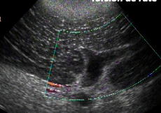 => liquide anéchogène (normalement, c’est du gras dans la cavité abdominale)