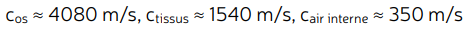 Quelle est la célérité de l’onde dans les os, dans les tissus et dans l’air interne ?