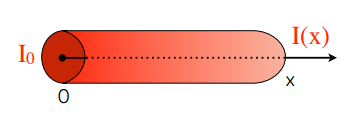 C’est une décroissance exponentielle de l’intensité selon la longueur x