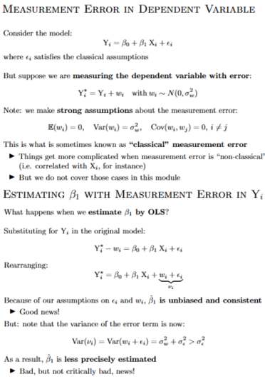 What happens when the dependent variable is measured with error?