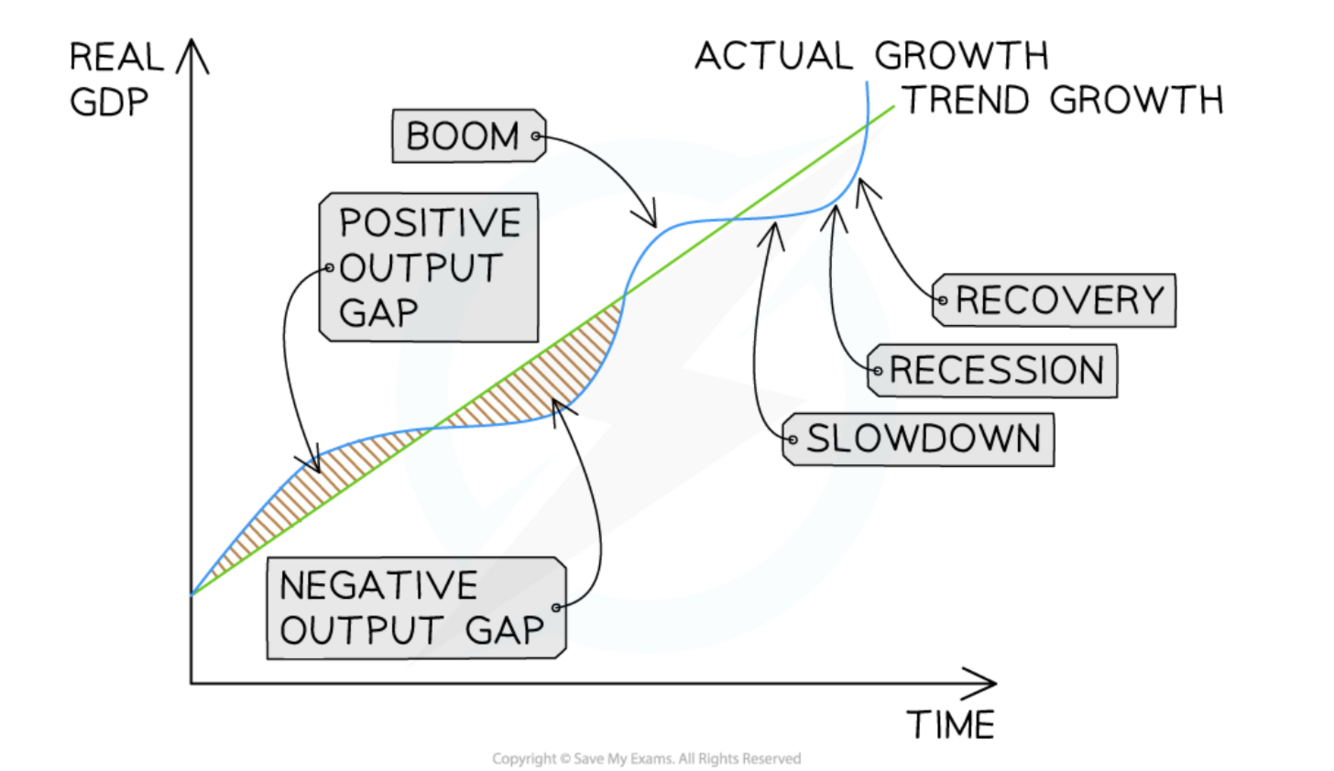 What is a positive output gap on economic cycle diagram?