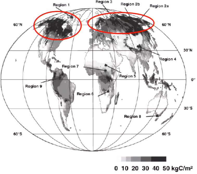 The following region can store over 140KgC/m²