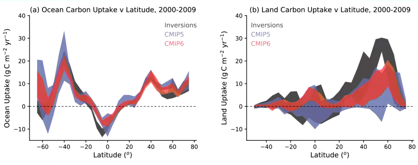 In the southern ocean there is large carbon uptake linked by the consumption and high nutrient concentrations there