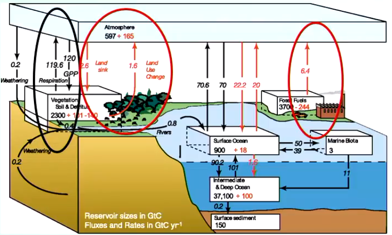 (50-250 GtC with RCP8.5 scenario compared with 6.4 GtC/yr of fossil fuel emission)