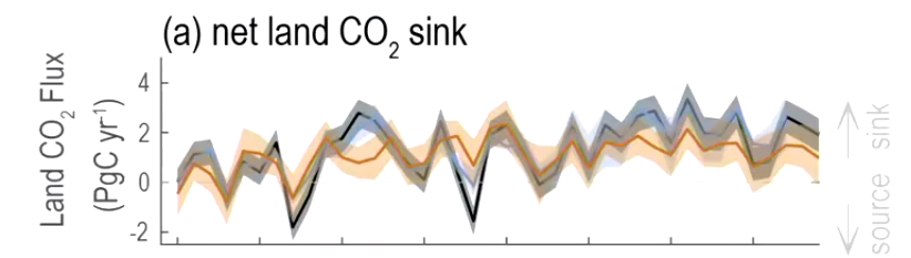 The sink strength of net land CO₂ sinks has a tendency to be increasing over the measurement period