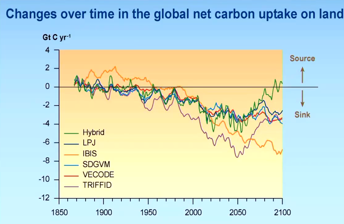 The tipping point is expected to be hit with carbon sinks with future climate change