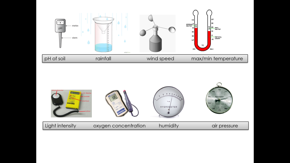 Light intensity oxygen concentration humidity air pressure