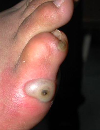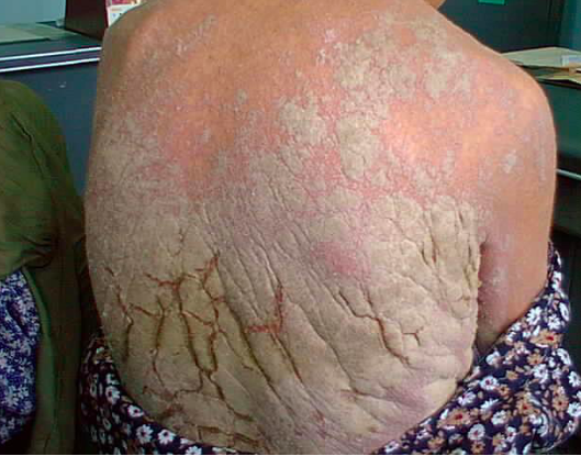 interdigital spaces, wrists, anterior axillary areas, periumbilical skin