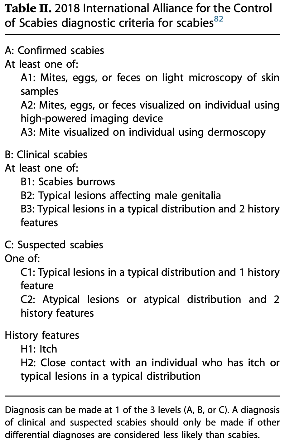 *persistance possible des des lésions 2-4 semaines après traitement (prurit ou dermatite post-scabétique)