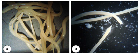 A) (Intestinal roundworm in Dogs + Cats) - Adult Toxocara canis