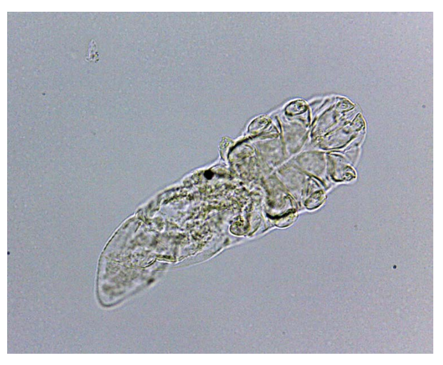 The male version of this parasite has triangular spines on the dorsal surface of the body.
