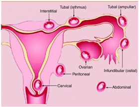 Possible sites of ectopic pregnancy