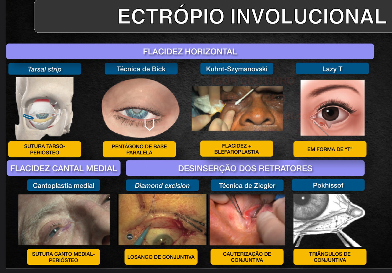 Técnica de Ziegler: leve cauterizada na regiao abaixo do ponto lacrimal, levando a retração dessa regiao e melhorando o ectrópio. (Pode ser utilizada na desinsercao dos retratores.