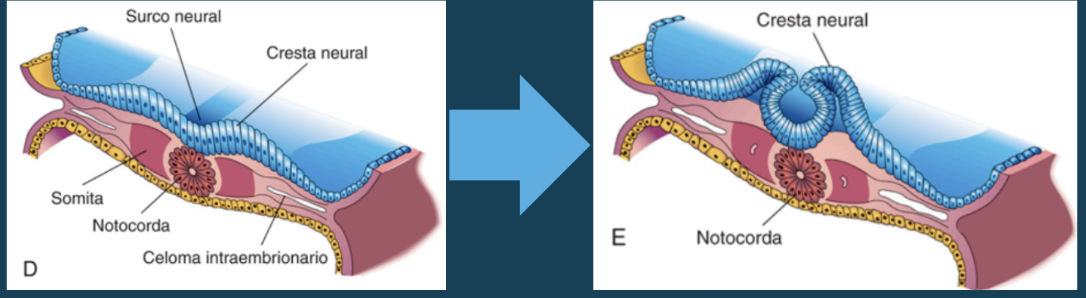 Los pliegues neurales se fusionan: tubo neural en 4ta semana, esta abierto en ambos extremos