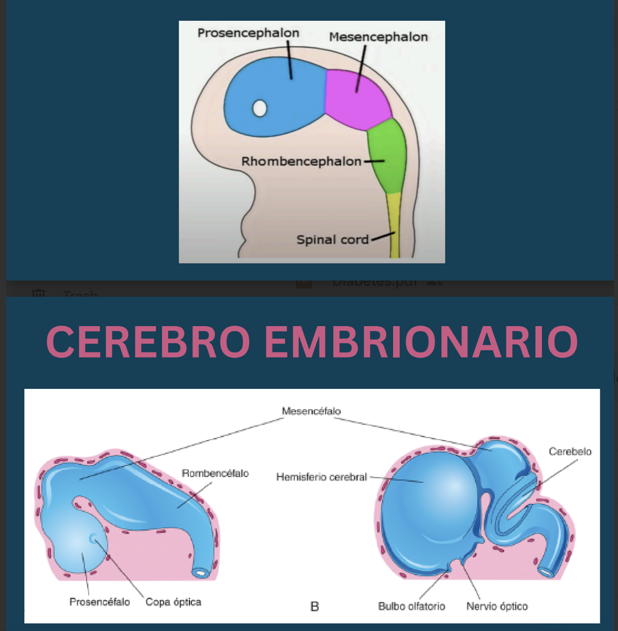 Extremo rostral/craneal: prosencefalo, mesencefalo y rombencefalo