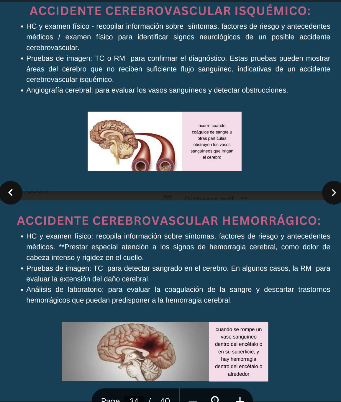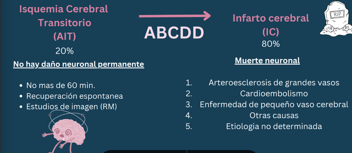 “Alteración en las neuronas, que provoca disminución de flujo sanguíneo en el cerebro, acompañada de alteraciones cerebrales de manera momentánea o permanente”