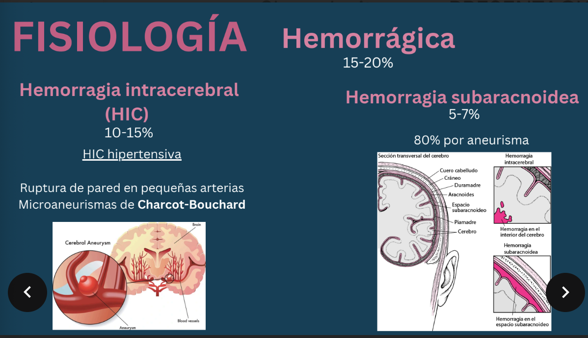 Hemorrágico: ruptura y sangrado de un vaso sanguíneo en el cerebro.