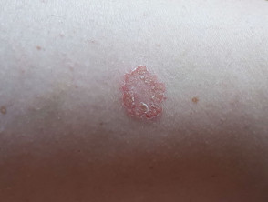 vesicles with exudation and crusting