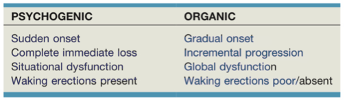 How do you differentiate between psychogenic and organic ED