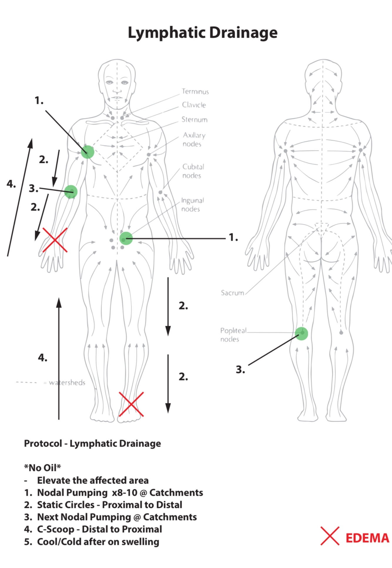 3. Nodal pumping 10 times (elevate the limb before doing lymphatic drainage, can do once but repeat others)