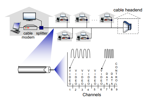 Frequency division multiplexing (FDM): different channels transmitted in different frequency bands