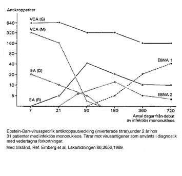 • De två andra (EBNA-IgG och VCA-IgG) påvisas i senare skede