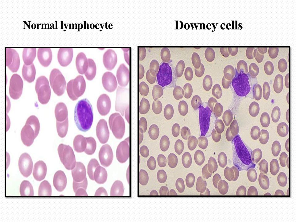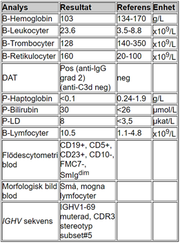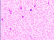 Små mogna blaster i överflöd (ja de ska ju inte finnas där), detta tyder på någon typ av lymfatisk leukemi