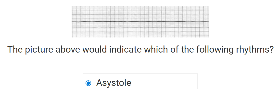 Asystole * Asystole is characterized by a complete absence of any electrical activity in the heart. On an ECG, asystole is represented by a flat line without any noticeable movement, fluctuations, or deflections. This indicates that the heart is not producing any electrical impulses, and consequently, there is no contraction of the heart muscle and no cardiac output. Asystole is a critical condition and is considered a form of cardiac arrest. Immediate medical response is crucial, involving cardiopulmonary resuscitation (CPR) and advanced life support measures.