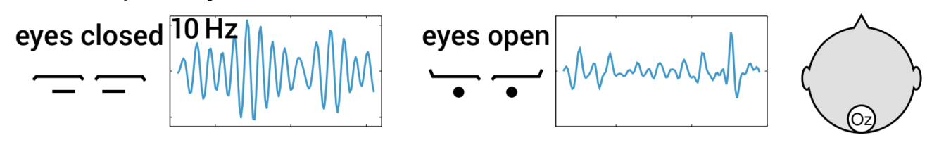 Similarly, Visual Alpha Rhythm is used to describe the oscillations in the occipital cortex when eyes are open/closed. Power of signal decreases when eyes are open.