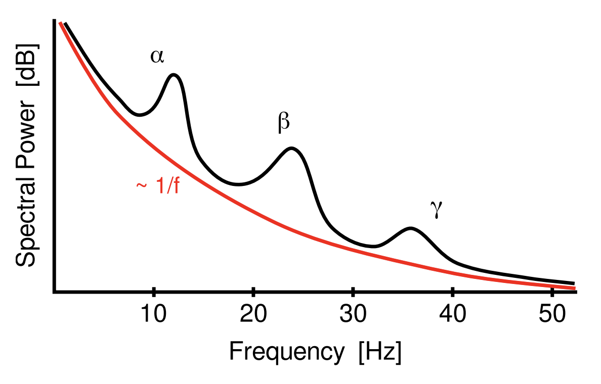 Imagine the power spectrum of EEG, and explain the 1/f law