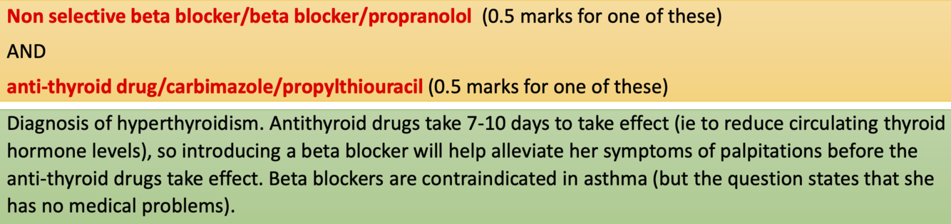 A 34 year old woman presents to her GP with weight loss and palpitations. Her GP checks some thyroid function tests: fT4 32 pmol/L (9 - 23) fT3 13 pmol/L (3.1 – 6.8) TSH <0.01 mU/L (0.3 – 4.2) Prior to this, she has been fit and well, with no medical problems and is not taking any medications. What two medications should the GP start?