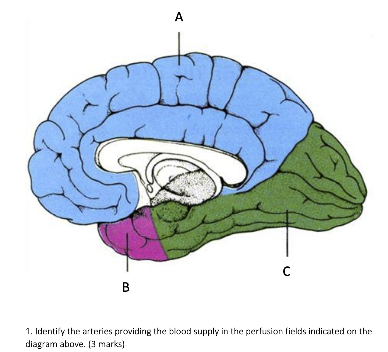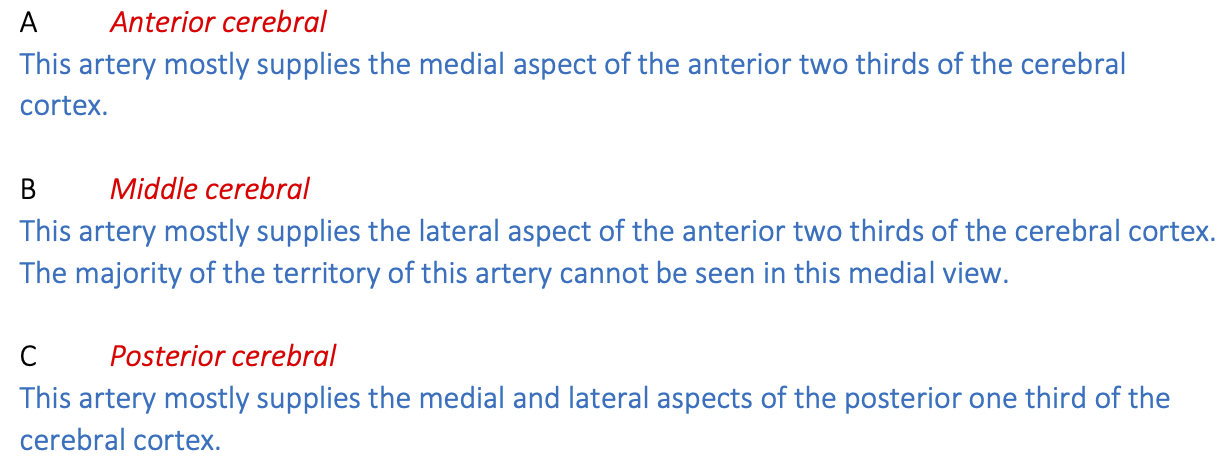 The motor supply to the body (except the leg) derives from the lateral aspect of the primary motor cortex, hence the arm, face, trunk, would be more affected than the leg. Also, this artery supplies lateral surfaces of temporal and parietal lobes. This gives rise to hemisensory deficits (primary somatosensory cortex involvement), aphasia (Wernickes’s involvement if in dominant side) and hemianopia due to damage to the optic radiation fibres (from lateral geniculate nucleus to the primary visual cortex in the white matter of the posterior temporal and parietal lobes)